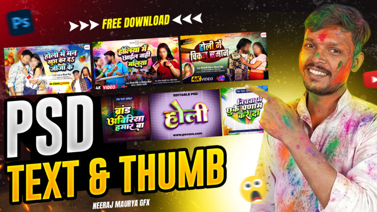 3D Holi Text Effect PSD free Editable | Free holi thumbnail psd 3d text PSD free download